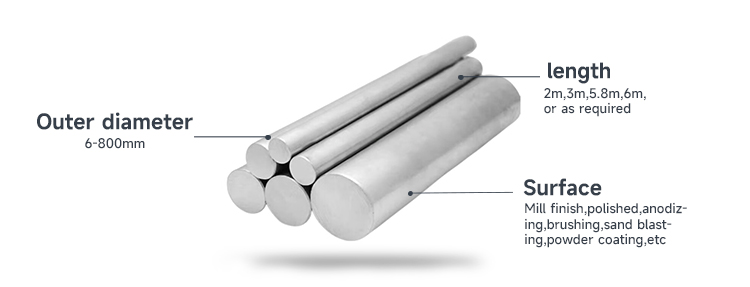 | Product Name | Extruded Aluminium Rod 6061 T6 T6511 Aluminum Round Bar |